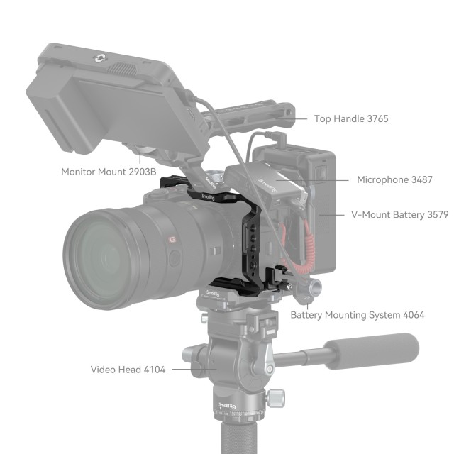 SmallRig Cage Kit za Sony A6700 4336 dizajniran je za pričvršćivanje dodataka, zaštitu kamere i HDMI priključka. Uključuje kavez i stezaljku za HDMI kabel. Kavez učvršćuje kameru pomoću jednog 1/4"-20 vijka na dnu i jednog M2.5 vijka na desnoj strani, s ugrađenim jastučićima koji sprječavaju ogrebotine. Njegova zglobna ruka na vratima baterije bolje odgovara krivulji kamere i ostavlja mjesta za mali prst za veću udobnost. Stezaljka HDMI kabela brzo se pričvršćuje na lijevu stranu kaveza pomoću vijka, štiteći HDMI priključak kako bi se osigurao stabilan prijenos.