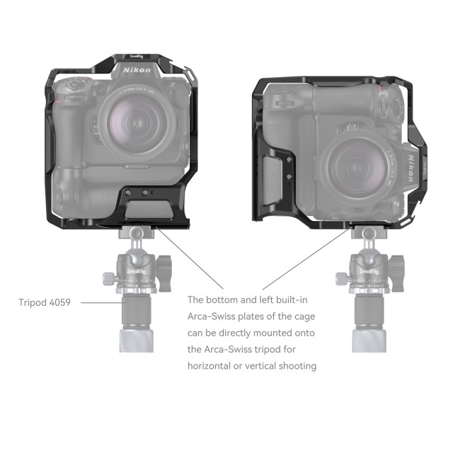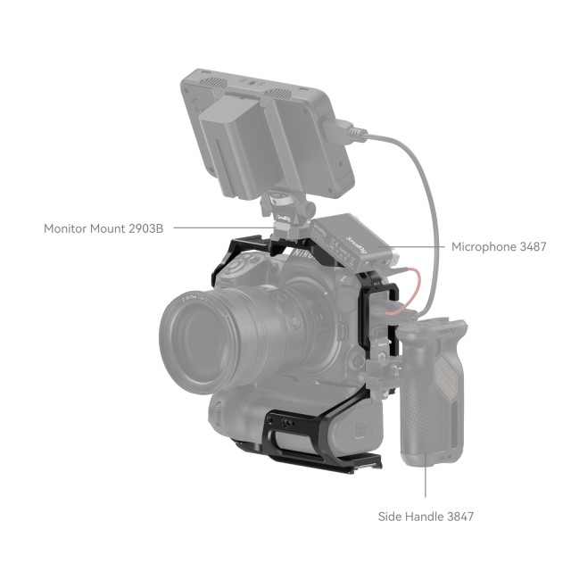 SmallRig kavez za Nikon Z 8 s baterijskim držačem MB-N12 3982 dizajniran je za zaštitu fotoaparata i fiksiranje dodataka. Pričvršćuje kameru jednim donjim vijkom od 1/4"-20 i jednim vijkom M2.5 s obje strane, s gumenim jastučićima protiv ogrebotina i omogućuje potpuni pristup gumbima, utorima za kartice, pretincu za baterije i preklopnom zaslonu. Točke za pričvršćivanje dodatne opreme uključuju 1/4"-20 i 3/8"-16 rupe s navojem i ARRI 3/8"-16 rupu za pozicioniranje koje podržavaju gornju ručku 2165 i 1638 , bočnu ručku 2093 i 2425 , nosač monitora 2903 i 2904 i 3875 Magic ruka ; dva Cold Shoe nosača odgovaraju mikrofonu i LED video svjetlu; a Arca Swiss brzootpuštajuća donja ploča i bočna ploča omogućuju vodoravno i okomito snimanje na stativu. Donja ploča za brzo otpuštanje Arca-Swiss također podržava DJI RS 2 / RSC 2 / RS 3 / RS 3 Pro gimbal za brzo prebacivanje između ručnog, gimbal i stativa načina rada. Postoje dvije rupe s navojem 1/4"-20 na prednjoj strani za 942 dvostruku stezaljku šipke od 15 mm, mat kutiju, nosač leće; i jedna rupa za pozicioniranje 1/4"-20 za3276 stezaljku s jednom šipkom za praćenje fokusa. Osim toga, uključen je magnetski dvostrani ključ za jednostavno rastavljanje i sastavljanje.