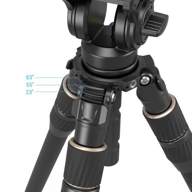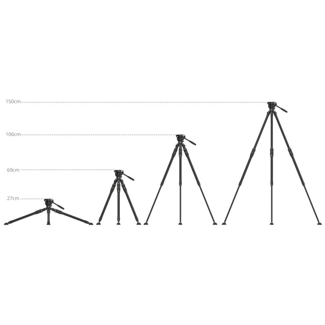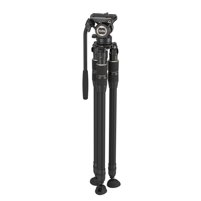 SmallRig komplet stativa od ugljičnih vlakana FT-S303 4643 stativ je od ugljičnih vlakana dizajniran za profesionalno video snimanje na otvorenom. Noge imaju FreeSpeed-Twist dizajn za brzo zatezanje, što omogućuje jednostavno i učinkovito postavljanje zatezanjem dvostrukih gumba za zaključavanje sva tri dijela. Radna visina kreće se od 27 cm (10,6 inča) do 150 cm (59,0 inča), a kompaktna duljina za pohranu iznosi 74 cm (29,1 inča). Korištenje promjera od 30 mm za noge osigurava lagani dizajn bez ugrožavanja stabilnosti i nosivosti. Ovaj tronožac, koji ima ugrađenu libelu s mjehurićima, radi s postoljem od 65 mm za niveliranje i jednostavno upravljanje razinom okvira. Komplet uključuje kompaktnu fluidnu glavu sa sustavom prigušivanja koji vam omogućuje glatko pomicanje fotoaparata.