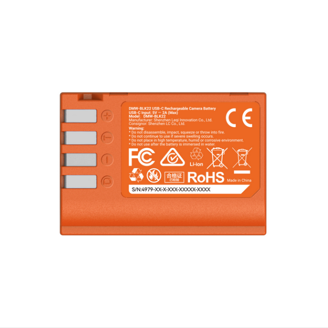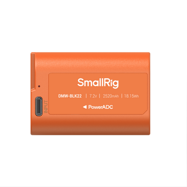 SmallRig DMW-BLK22 USB-C punjiva baterija za kameru (narančasta) 4979 dizajnirana je za Panasonic kamere, nudeći snažan kapacitet od 2520 mAh za produžene sesije snimanja. Uz USB-C priključak za punjenje, ova baterija omogućuje brzo punjenje u samo 2,5 sata, što je čini idealnim suputnikom za fotografe u pokretu.
