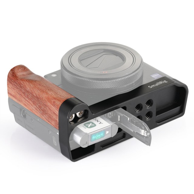 SmallRig 2248 drveni držač u obliku slova L dizajniran je za fotoaparat SONY RX100 M3/M4/M5/M5/M5A. Sigurno fiksira kameru pomoću vijka na dnu. Drveni rukohvat na desnoj strani povećava veličinu rukohvata fotoaparata, što omogućuje bolje snimanje iz ruke. Također vam omogućuje okretanje LCD zaslona i pristup svim priključcima i gumbima fotoaparata. Osim toga, ima četiri dodatne rupe s navojem od 1/4'-20 na dnu za pričvršćivanje ploča za tronošce, kao što je ploča SmallRig Arca 2146