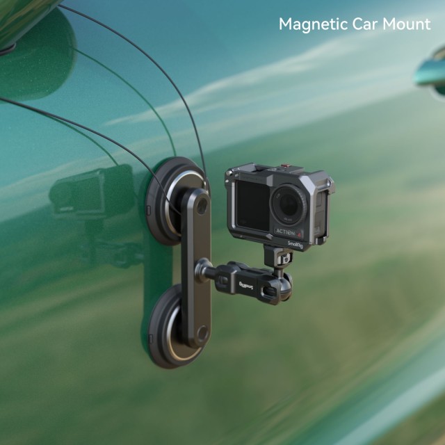 SmallRig Dual Magnetic Suction Cup Mounting Support Kit za akcijske kamere 4467 dizajniran je za snimanje scena automobila pomoću akcijske kamere. Preporuča se koristiti samo na ravnim željeznim površinama, kao što su željezna vrata, ograde, kuhinjsko posuđe, sportska oprema itd. Ekskluzivni dizajn od dva materijala kombinira magnete s vakuumskom sisaljkom, osiguravajući sigurnije, dugotrajnije i stabilnije snimanje . Čak i u malo vjerojatnom slučaju curenja silikonske usisne čašice zbog jakih vibracija, magneti mogu povući cijeli nosač za montažu na površinu željeznog automobila (unutar nosivosti od 0,35 kg u dinamičnoj sceni snimanja s ravnom cestom pri najvećoj brzini ne prelazi 120 km/h ili 74 mph), učinkovito izbjegavajući rizik od pada uzrokovanog curenjem silikonske vakuumske čašice.