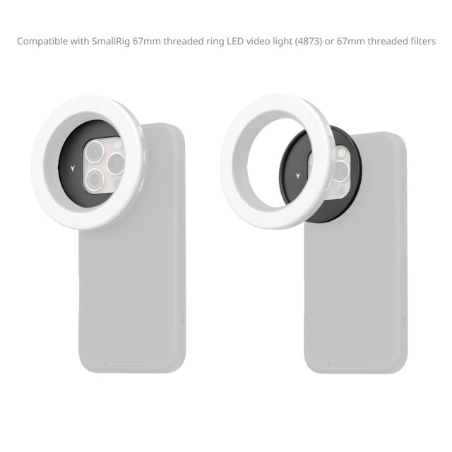 Adapter filtera s navojem SmallRig FilMov od 67 mm za iPhone 16 serije 5173 posebno je dizajniran za futrole za iPhone 16 Pro i 16 Pro Max. Omogućuje izravnu montažu filtara s navojem od 67 mm i LED video svjetla s prstenom s navojem SmallRig od 67 mm (ID 4873), učinkovito sprječavajući vinjetiranje uzrokovano slaganjem filtarskih adaptera. Osim toga, kada je uparen s adapterom s navojem na magnet iz kompleta filtera SmallRig, omogućuje univerzalnu kompatibilnost s magnetskim filterima od 67 mm, olakšavajući besprijekornu instalaciju i zamjenu filtera.