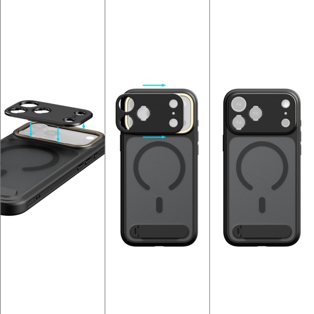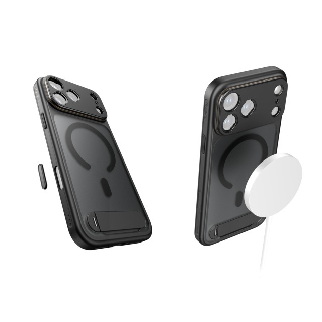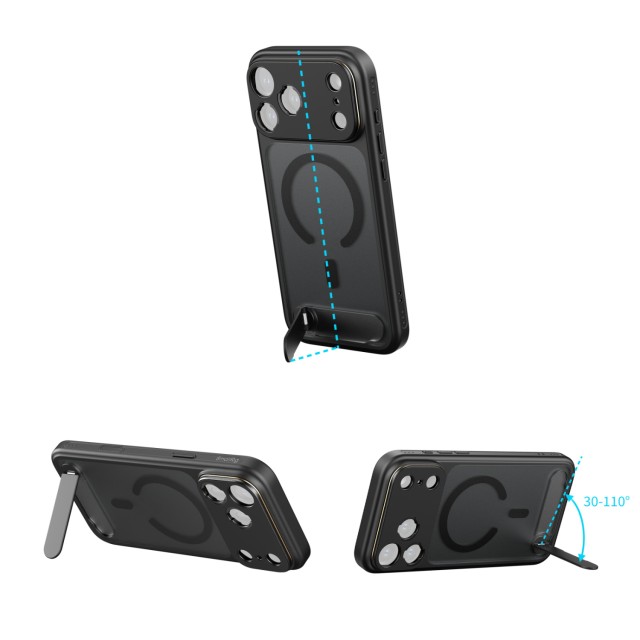 Dizajnirana za optimalnu funkcionalnost, futrola je precizno poravnana s tipkom za upravljanje kamerom iPhonea, pružajući osjetljivu taktilnu povratnu informaciju i istovremeno osiguravajući sveobuhvatnu zaštitu. Integrirani višekutni stalak (30°-110°) omogućuje jednostavan prijelaz između portretne i pejzažne orijentacije. Ugrađeni MagSafe magneti osiguravaju univerzalnu kompatibilnost s MagSafe priborom, dok bočna rupa za vrpcu olakšava pričvršćivanje remena za zglob ili rame za praktično nošenje u pokretu.