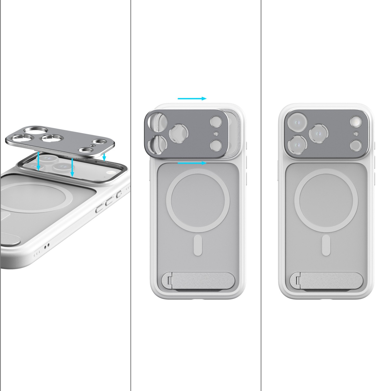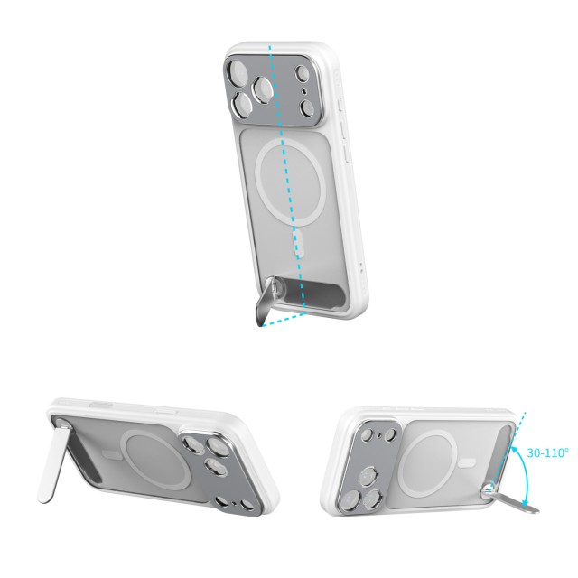 Dizajnirana za optimalnu funkcionalnost, futrola je precizno poravnana s tipkom za upravljanje kamerom iPhonea, pružajući osjetljivu taktilnu povratnu informaciju i istovremeno osiguravajući sveobuhvatnu zaštitu. Integrirani višekutni stalak (30°-110°) omogućuje jednostavan prijelaz između portretne i pejzažne orijentacije. Ugrađeni MagSafe magneti osiguravaju univerzalnu kompatibilnost s MagSafe priborom, dok bočna rupa za vrpcu olakšava pričvršćivanje remena za zglob ili rame za praktično nošenje u pokretu.