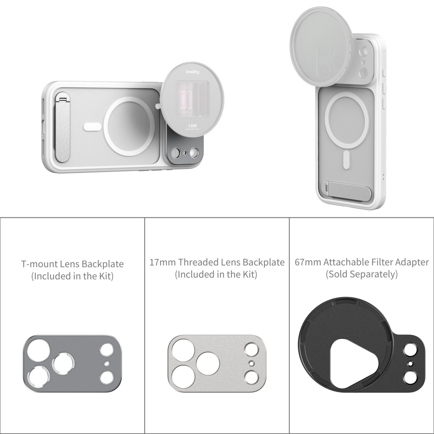 Ima sustav za brzo otpuštanje stražnje ploče objektiva koji uključuje T-mount i 17 mm navojne stražnje ploče za brzu izmjenu objektiva. Osim toga, podržava opcionalne FilMov 67 mm adaptere za filtere (ID 5547, prodaju se zasebno) za primjenu s magnetskim filterima od 67 mm.