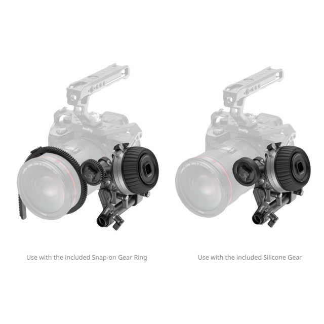 Uključen je silikonski zupčanik (ID 3852 ) koji omogućuje fokusiranje na trenje za objektive bez zrcala, zajedno s kompaktnim silikonskim ručnim kotačićem za držanje bez klizanja i fino podešenu kontrolu. Ovo slijedi izoštravanje pomoću šipke Φ15 mm i stezaljke s jednom šipkom (ID 1549 ) na lijevoj ili gornjoj strani leće, s podesivim kutovima za fleksibilne konfiguracije. Njegov modularni dizajn osigurava brzo i precizno postavljanje za ručni uređaj, stativ i razne scenarije snimanja.