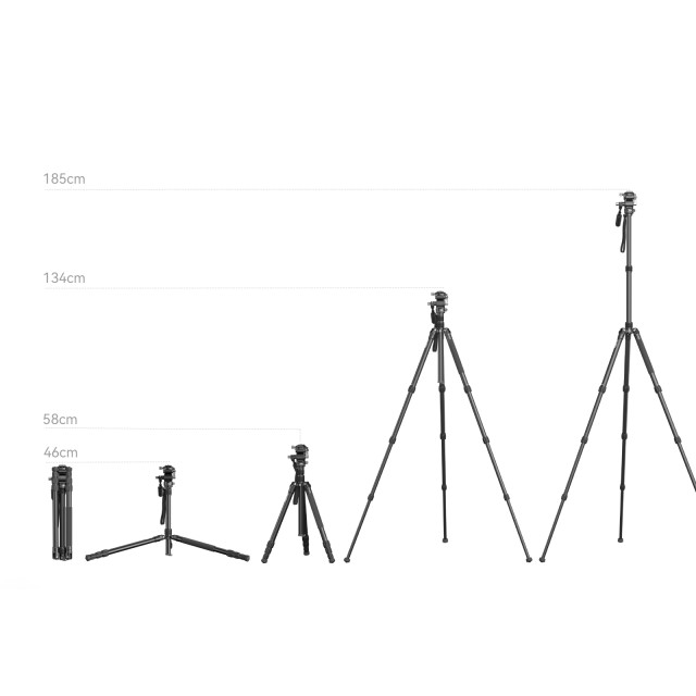 SmallRig CT195 Video Tripod Kit 4307 je pažljivo dizajniran za videosnimanje, live streaming, vlogging itd., posebno u scenarijima na otvorenom. Ima obrnuto sklopive noge od aluminijske legure koje se mogu sklopiti do 46 cm i središnji stup za povećanje stabilnosti. Noge od 4 dijela s bravama s gumbima omogućuju vam podešavanje radne visine do 185 cm u sekundi, a središnji stup koji se može odvojiti može se preokrenuti za snimke iz niskog kuta. Rastavljanjem jedne noge i pričvršćivanjem na glavu, stativ možete pretvoriti u monopod. Postoji gumb s 3 stupnja (23° / 55° / 79°) za brzo podešavanje kuta prema vašim potrebama. Što se tiče Video Head 4104 s gornje strane omogućuje brzo prebacivanje između vodoravnog i okomitog snimanja i smjera montaže ploče za brzo otpuštanje, potpornog kaveza i L-nosača. Također dolazi s uklonjivom teleskopskom ručkom koja se lako pohranjuje i omogućuje da se glava okreće za 360° i ravnomjerno naginje +90°/-90°.