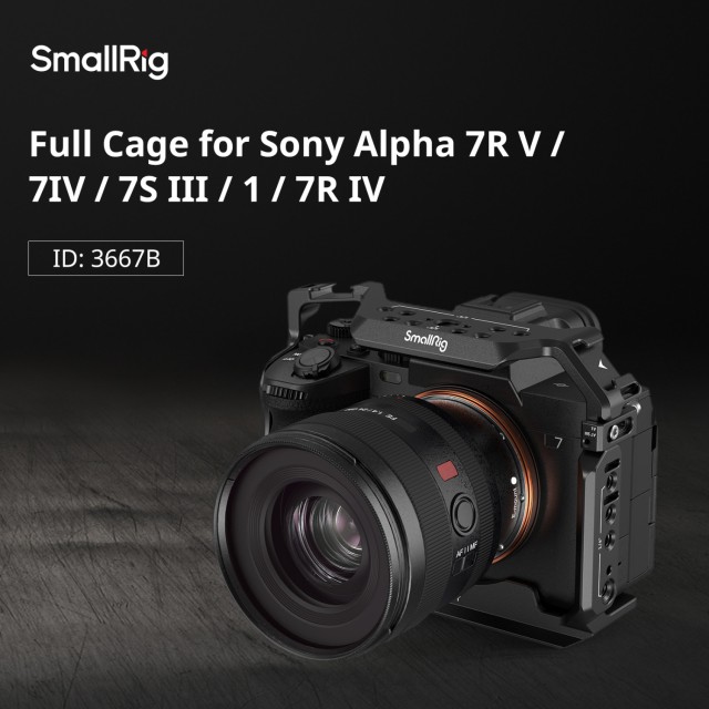 SmallRig Full Cage za Sony Alpha 7 IV/Alpha 7 S III/Alpha 1 3667 dizajniran je za postavljanje dodataka i zaštitu vaše kamere. Uključene su dvije bočne ploče za zaključavanje i jedan 1/4"-20 vijak na dnu za pričvršćivanje kamere i sprječavanje pogrešnog poravnanja. Ugrađeni zaštitni odstojnici pune dužine sprječavaju ogrebotine kamere. Kavez omogućuje pristup sučeljima, kontrolama, gumbe ili bateriju. U pretincu za baterije nalazi se ključ za vreteno koji se prilagođava zakrivljenosti fotoaparata i ostavlja prostora za udobno držanje prstima. Rupe s navojem 1/4"-20, rupe za pozicioniranje 3/8"-16 ARRI i nosač za hladne cipele gornji rukohvat 2165 , bočna ručka 2093 , držač monitora 2903 , mikrofoni, LED svjetla, monitori itd.