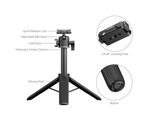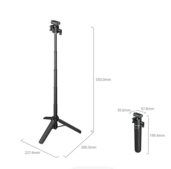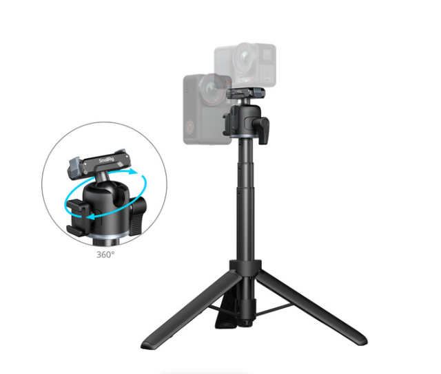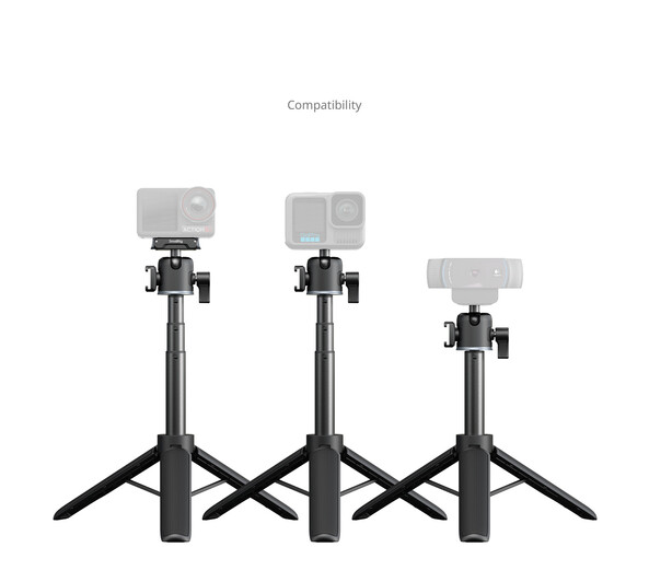 Pretvorite svoju kompaktnu akcijsku kameru u svestranu ručnu ili kameru za montažu na stativ pomoću teleskopskog rukohvata/stativa SmallRig, koji ima aluminijski štap s 4 dijela koji se proteže od 7,9 do 21,7", sklopivu bazu mini stativa, podesivu kuglastu glavu s vijkom 1/4"-20 i stezaljku za akcijsku kameru s brzim otpuštanjem koja podržava do 1,1 lb - idealno za GoPro HERO i DJI Action seriju (ne preporučuje se za Insta360 X-seriju zbog vidljivosti štapa u 360° načinu rada).