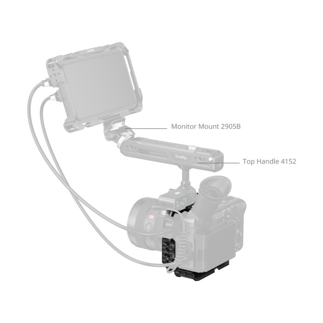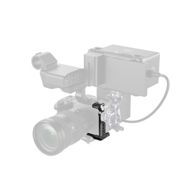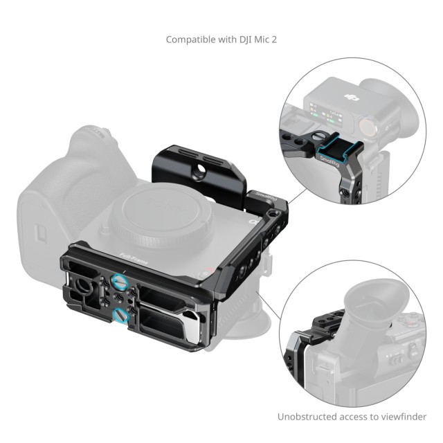 Odvojiva gornja ploča ima NATO šinu na koju se može postaviti Sonyjeva XLR gornja ručka ili SmallRigova rotirajuća gornja ručka (ID 4152) bez ometanja elektronskog tražila (EVF). S preciznim izrezima, ovaj kavez osigurava da nagibni EVF, tipke i priključci fotoaparata ostanu u potpunosti dostupni.