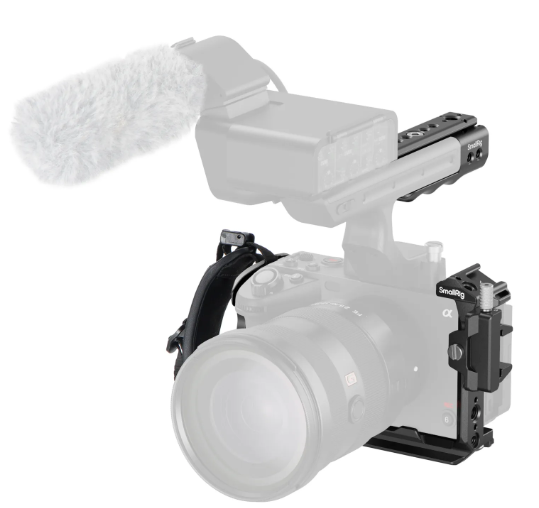 Ručni komplet kaveza 4184B za Sony FX30 / FX3 poboljšava vaše iskustvo snimanja udobnim remenom za ruku, XLR produžetkom ručke i HDMI stezaljkom za kabel. Nudi svestrane mogućnosti montaže, uključujući navojne rupe od 1/4"-20, ARRI rupe za lociranje od 3/8"-16, nosače za hladne papučice i NATO šine, omogućujući jednostavan pristup priboru. Ploča za brzo otpuštanje Arca-Swiss omogućuje brzo prebacivanje između ručnog načina rada i načina rada s stativom.