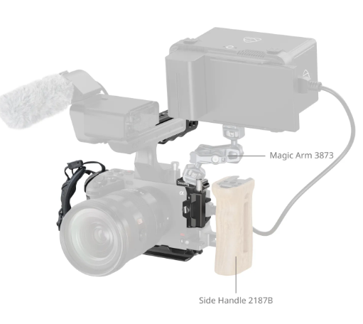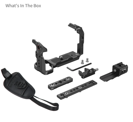 Dizajn kaveza također ima šarku na vratima baterije, što poboljšava udobnost držanja za vaš mali prst, te dizajn s trostrukim zaključavanjem kako bi se spriječilo uvijanje tijekom snimanja. S otvorima za montažu s lijeve i desne strane, kompatibilan je sa sustavima za kontrolu objektiva i postavkama praćenja fokusa.