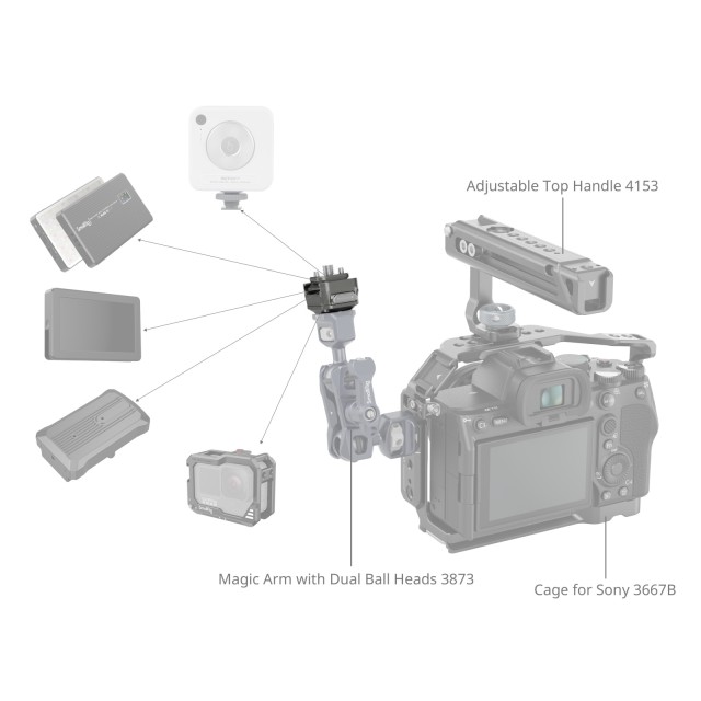 SmallRig HawkLock H21 Universal Quick Release Mount Plate Kit 4491 sastoji se od gornje ploče za brzo otpuštanje i baze. Pritisnite gumb da biste proširili klinove, gurnite tračnicu u utor i zaključajte je otpuštanjem gumba. Precizne mjere osiguravaju savršeno pristajanje i stabilnost te sprječavaju slučajno ispadanje. Komplet montažne ploče može izdržati do 5 kg / 11 lb. Ploča za brzo otpuštanje podržava bilo koju opremu s navojem od 1/4"-20, kao što su lagane kamere bez ogledala, monitori, akcijske kamere itd. Osim toga, ima dvije opcijske igle za lociranje, koje mogu učinkovito spriječiti otklon uređaja kada se koristi s Kavezi za akcijske kamere SmallRig (npr.: 4119B , 3084C i 4088B ) Osnovna ploča ima otvor s navojem od 1/4"-20 i otvor za lociranje bilo koje opreme s vijkom od 1/4"-20, npr.: mini kuglastu glavu. Komplet potpore za montažu 2948B , 3905 itd., kao i dodaci s klinovima za lociranje, uključujući Magic Arm 3873 , 3874 , 3875 , 3959 i 4194 .