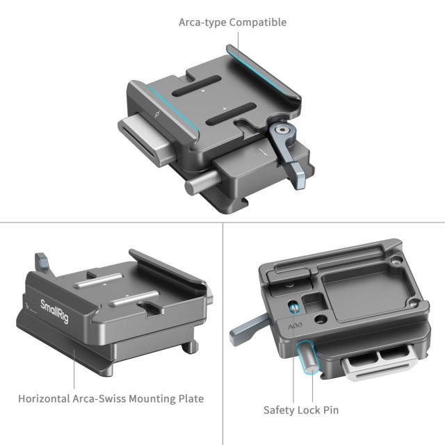 SmallRig HawkLock H38 Arca-Swiss ploča za brzo otpuštanje za DJI stabilizatore 4639 posebno je dizajnirana za DJI RS 2 / RSC 2 / RS3 / RS 3 Pro / RS 3 mini / RS 4 / RS 4 Pro stabilizatore, olakšavajući lakše niveliranje kamere na stabilizatorima. Ova ploča omogućuje montažu fotoaparata kao što su Sony FX3 s objektivom od 24-70 mm, Canon R5 s objektivom od 24-70 mm, FUJIFILM X-T5 s objektivom od 16-55 mm i LUMIX GH6 s objektivom od 12-60 mm. RS 3 mini. Arca-Swiss baza za brzo otpuštanje ima podesivi dizajn protiv klizanja kako bi se spriječilo slučajno odvajanje i omogućilo učinkovito prebacivanje između postavki stativa i stabilizatora. Dodatno, Arca-Swiss ploča za brzo otpuštanje uključuje dizajn protiv uvijanja za sigurnu montažu kamere.