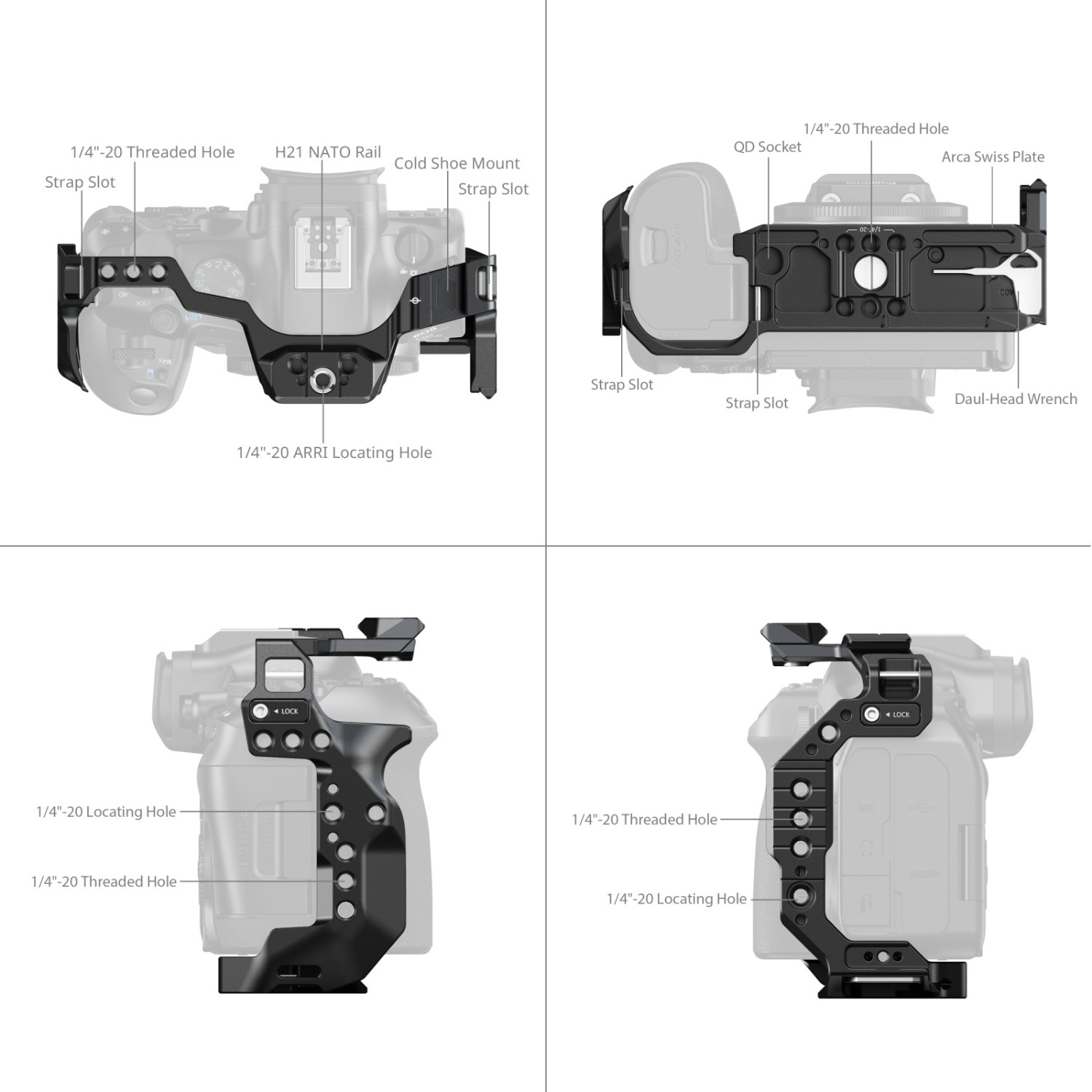 SmallRig "HawkLock" kućište s brzim otpuštanjem za Canon EOS R6 Mark III / R6 Mark II 5954 pruža robusnu zaštitu i široke mogućnosti montaže za profesionalno snimanje. Kućište se sigurno pričvršćuje na kameru pomoću donjeg vijka 1/4"-20 i dvostrukih bočnih blokova za lociranje, dok više silikonskih jastučića sprječava ogrebotine i osigurava čvrsto prianjanje. Omogućuje potpuni pristup gumbima, utorima za kartice, preklopnom zaslonu i odjeljku za bateriju.