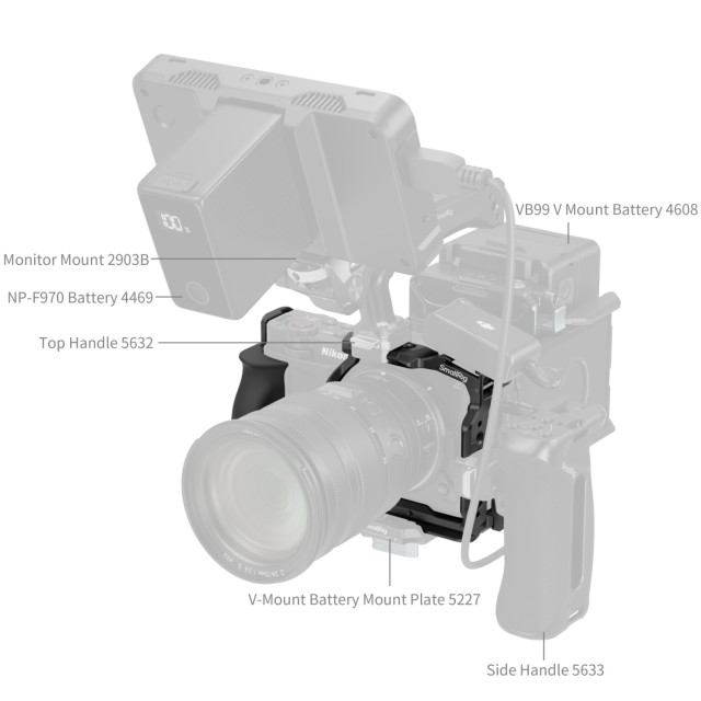 Kavez nudi brojne mogućnosti proširenja, uključujući navojne rupe 1/4"-20, pozicionirane rupe 1/4"-20 i ARRI pozicionirane rupe 3/8"-16 za pričvršćivanje dodatne opreme kao što su gornje ručke (ID 3765, 4927) i magic arms (ID 5308, 4900). Njegova integrirana NATO šina s brzim otpuštanjem "HawkLock" podržava kompatibilne gornje ručke (ID 5632, 4483), bočne ručke (ID 5633, 4485) i nosače monitora (ID 4487). Dodatno, ugrađena QD utičnica omogućuje pričvršćivanje QD naramenica (ID 4118B), kao i utore za trake za zapešće (ID 3848) ili naramenice (ID 4884, 5208).