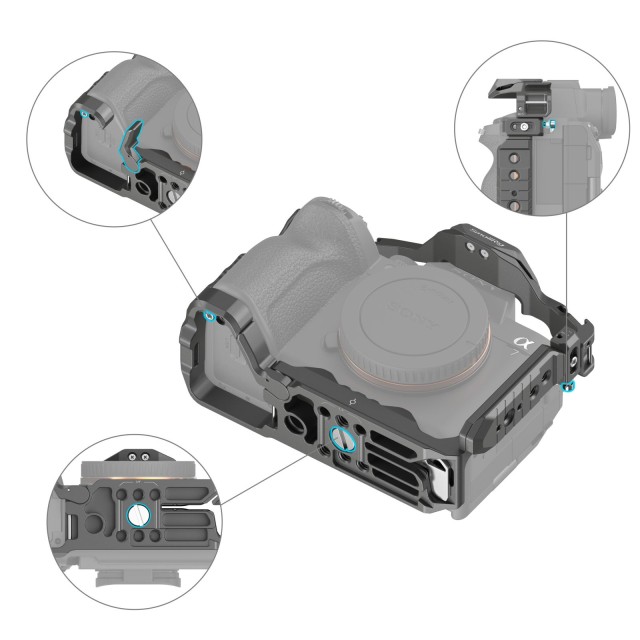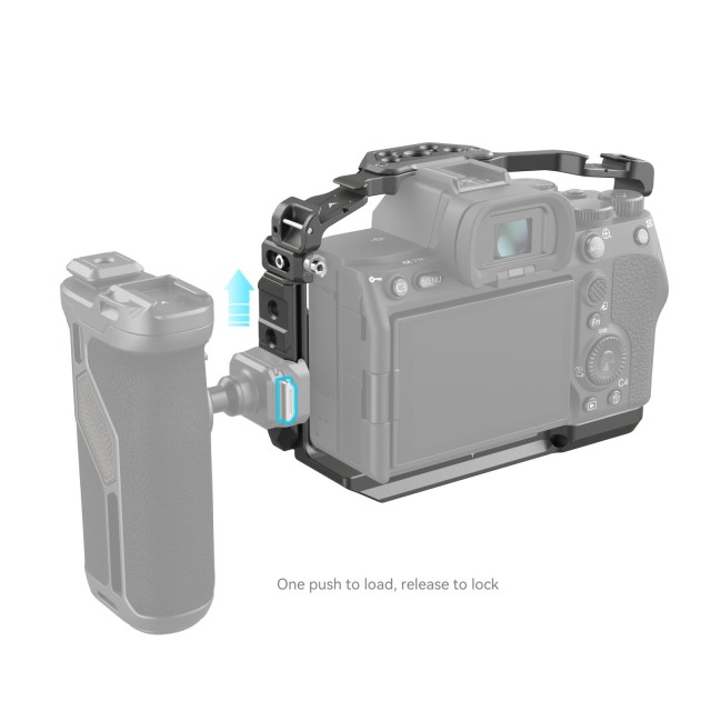 SmallRig HawkLock Quick Release Cage Kit za Sony Alpha 7R V / Alpha 7 IV / Alpha 7S III 4538 dizajniran je za olakšavanje snimanja pod niskim kutom i zaštitu fotoaparata, a istovremeno nudi širok raspon nosača za dodatke. Uključuje kavez, stezaljku za HDMI kabel, NATO šinu i gornju ručku. Patentirana samorazvijena struktura za brzo otpuštanje (nazvana HawkLock) pokriva hladne cipele, NATO šinu i arca swiss, koja se koristi s ekološkim dodacima HawkLock za ostvarivanje čvrstog i bez lažnog položaja, jednim pritiskom za punjenje, otpuštanjem za zaključavanje i poboljšati učinkovitost rastavljanja.