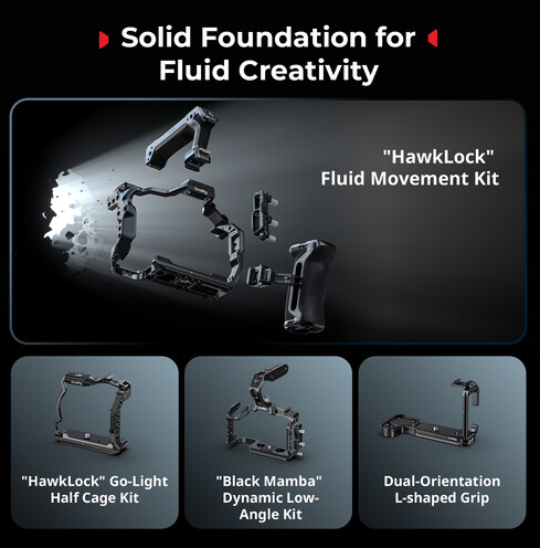 Ovaj kavez omogućuje potpuni pristup kontrolama i priključku za blic vaše kamere, što vam omogućuje da montirate mikrofone, svjetla ili drugu dodatnu opremu izravno na kavez bez ometanja funkcionalnosti kamere. S više navojnih rupa u stilu ARRI od 1/4"-20 i 3/8"-16, kavez podržava razne mogućnosti montaže, uključujući dodatnu dodatnu opremu poput monitora ili vanjskog snimača.