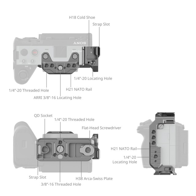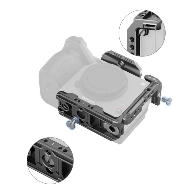 SmallRig HawkLock Quick Release Half Cage za Sony FX3 / FX30 4772 dizajniran je za zaštitu kamere i pružanje točaka za montažu dodataka. Modularni kavez sastoji se od gornje ploče (NATO šina) i kaveza u obliku slova L. NATO tračnica pričvršćena je na vrhu pomoću dva vijka 1/4"-20 i uklonjena kako bi se omogućila ugradnja originalne XLR gornje ručke; kavez u obliku slova L pričvršćen je pomoću vijka 1/4"-20 na lijevoj strani i na dno za sprječavanje uvijanja, s jastučićem protiv ogrebotina. Patentirana samorazvijena struktura za brzo otpuštanje (nazvana HawkLock) pokriva hladnu cipelu, NATO šinu i Arca-Swiss ploču.