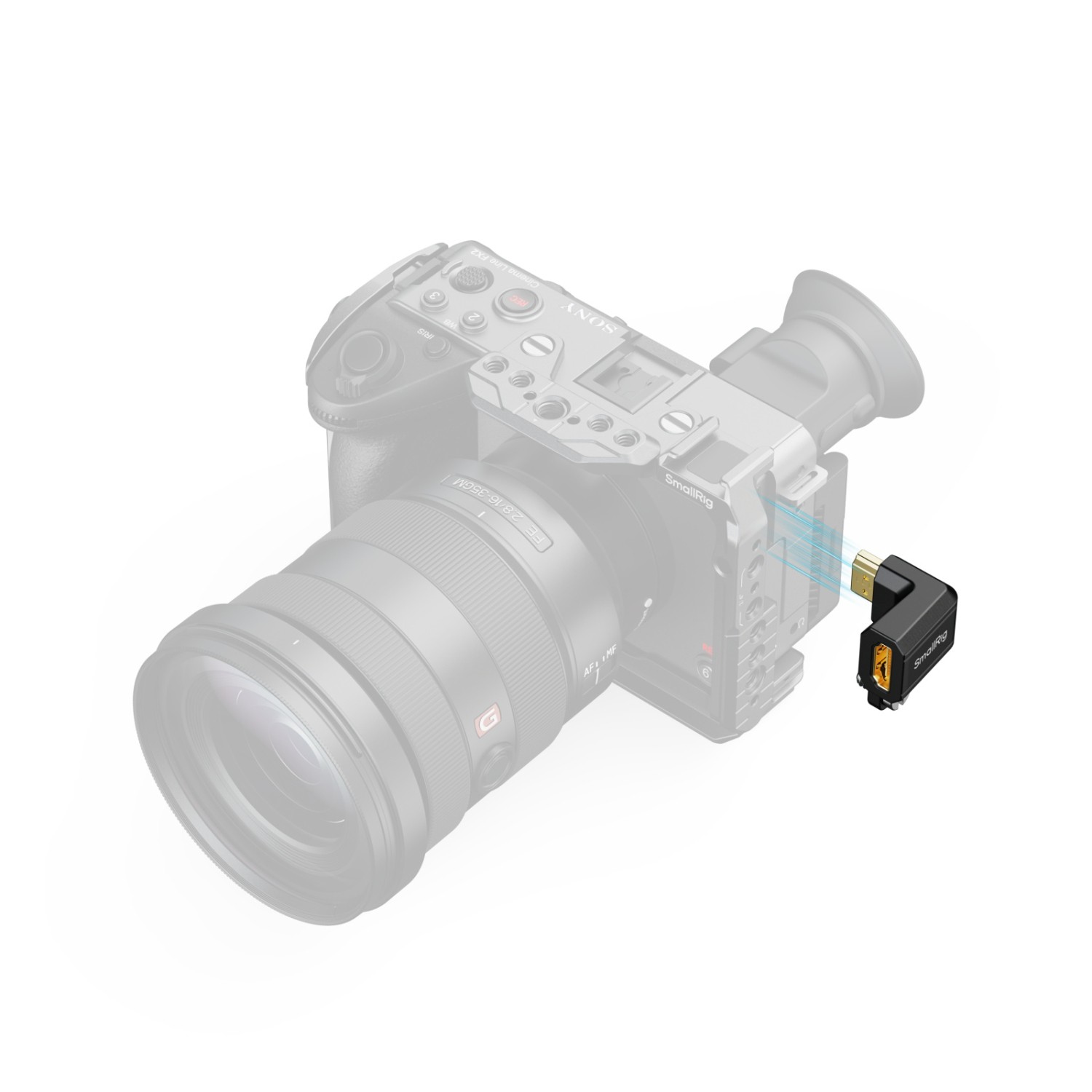 SmallRig High-Definition HDMI adapter za Sony FX2 5593 dizajniran je za optimizaciju vertikalnog snimanja sa Sony FX2 kamerama. Učinkovito učvršćuje HDMI kabele kako bi se osigurao stabilan prijenos podataka. Adapter se lako pričvršćuje na navojni priključak kamere pomoću vijka bez alata, preusmjeravajući HDMI kabele kako bi se spriječilo ometanje s L-oblikovanim montažnim pločama.
