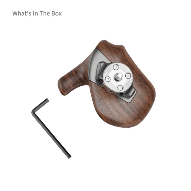 Drvena ručka SmallRig "ImageGrip" serije s ARRI rozetom (lijeva strana). Ergonomski dizajn i vrhunski hvat: Konturno prianjanje za udobno držanje. Glatka rotacija, fluidno snimanje: Ima ARRI rozetu za precizno podešavanje kuta i jednostavno kadriranje.