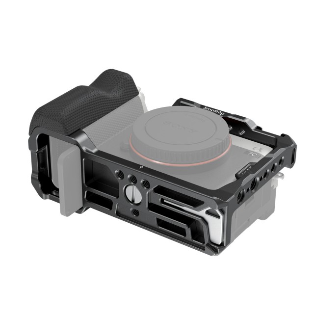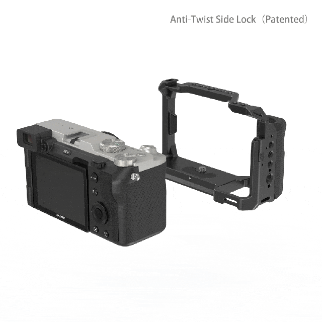 SmallRig kavez s bočnom ručkom za kameru Sony A7C 3212 dizajniran je za postavljanje točaka za dodatke kao što su monitori, mikrofoni i LED svjetla tijekom profesionalnog snimanja videa. Dolazi s ugrađenim silikonskim držačem koji je ergonomski dizajniran za poboljšanje iskustva držanja. Kavez pričvršćuje kameru vijkom od 1/4"-20 na dnu. Kako biste dodatno spriječili uvijanje, također možete koristiti desnu bravu tako da klizač gurnete prema gore i pričvrstite priloženi mali vijak u rupu za remen kamere.