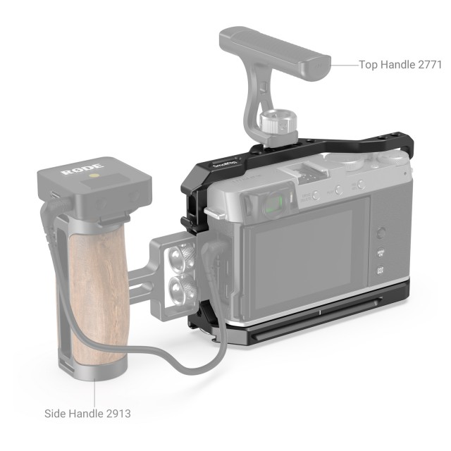 Kavez SmallRig za kameru Fujifilm X-E4 3230 dizajniran je za postavljanje točaka za dodatke i poboljšava iskustvo držanja za profesionalno snimanje videa. Pričvršćuje se na kameru jednim vijkom 1/4"-20 na dnu i ima prirubnice protiv uvijanja na prednjoj strani. Ima nekoliko ugrađenih rupa s navojem 1/4"-20 za SmallRig HTS2756 gornju ručku, 2904 monitor Nosač, obuća za hladno montiranje 2879 , itd. Njegova ARRI 3/8"-16 rupa za gornje pozicioniranje odgovara gornjoj ručki ARRI 2165 i nosaču za monitor 2903 ; lijeva ugrađena utičnica omogućuje montažu mikrofona ili LED svjetla.