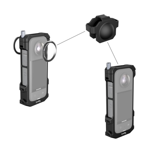 SmallRig okvir za Insta360 X3 4088B štiti kameru i olakšava snimanje pružajući razne mogućnosti montaže dodatne opreme. Okvir koji pristaje obliku ima silikonske jastučiće za sprječavanje ogrebotina, a palčani vijak sigurno zaključava kameru u okvir s gornje strane. Postoje dvije hladne nožice s obje strane za dodatke poput mikrofona i svjetla. Priloženi su sklopivi instalacijski prsti s obje strane za pričvršćivanje selfie štapova, osnovnih ploča itd. Ugrađeni sklopivi prsti na dnu imaju 1/4"-20 rupu s navojem za tronožac. Osim toga, uključen je i poklopac za objektiv kako biste spriječili ogrebotine.