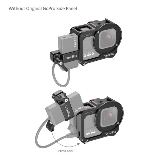 SmallRig kavez za vlogging i držač adaptera za mikrofon za GoPro HERO8 Black CVG2678 je lagani aluminijski kavez koji štiti kameru dok istovremeno pruža mnogo nosača za dodatke bez ometanja pristupa gumbima, priključcima i bateriji kamere. Gurnite kameru u kavez (najprije uklonite bočni poklopac baterije kamere) i jednostavno pritisnite poklopac.