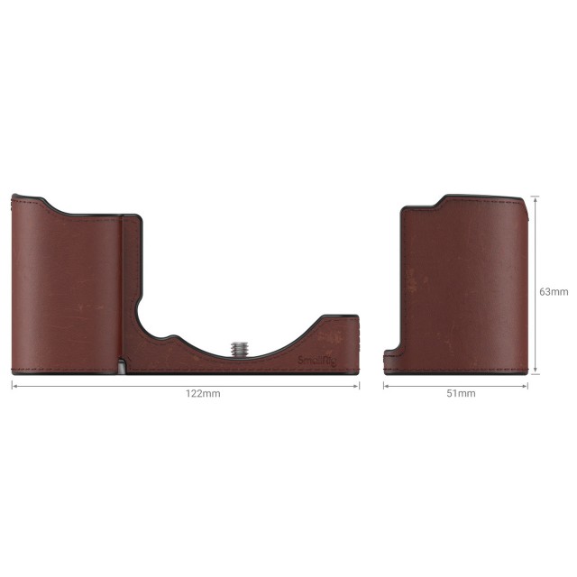 SmallRig kožna torbica za Sony ZV-E10 3527 dizajnirana je da pruži zaštitu i bolje prianjanje. Ručno izrađen s gornjim slojem od prave kože i podstavom od mikrovlakana kako bi se spriječilo prljanje odjeće od znoja. Kutija koja pristaje obliku pričvršćuje se na dno fotoaparata s 1/4''-20 D-prstenastim vijkom i ne blokira preklopni zaslon ili druge donje dijelove i priključke. Izrađen od lagane aluminijske legure za zrakoplove, njegova donja ploča održava pristup zamjeni baterije i ima 1/4''-20 navojnu rupu za pričvršćivanje stativa bez potrebe za rastavljanjem polovice kućišta.
