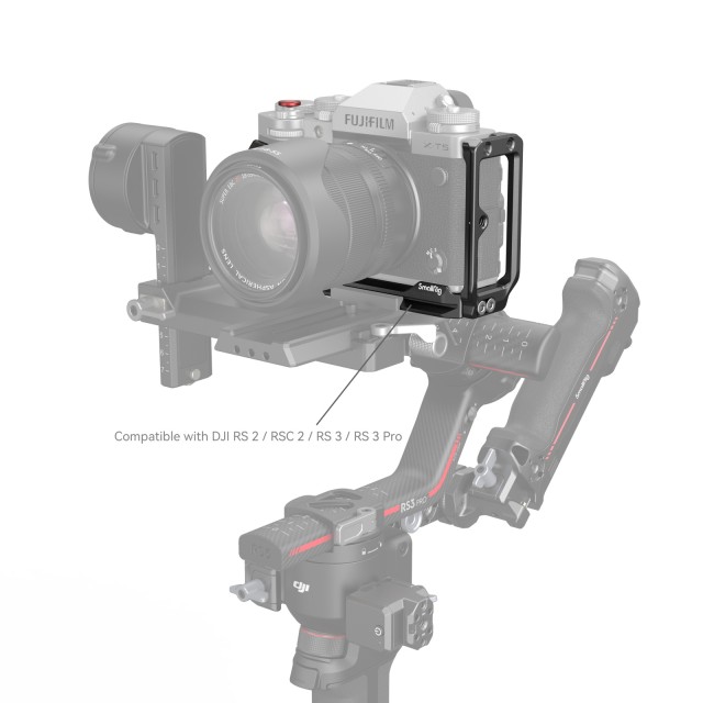 SmallRig L-nosač za fotoaparat FUJIFILM X-T5 4137 dizajniran je za olakšavanje prebacivanja između vodoravnog i okomitog načina rada i poboljšava iskustvo držanja. Pričvršćuje kameru s jednim 1/4"-20 vijkom i jednim klinom za pozicioniranje na dnu, s gumenim jastučićima protiv ogrebotina i omogućuje potpuni pristup gumbima, utorima za kartice, pretincu za baterije i preklopnom zaslonu. Uz ugrađeni -u crnom drvenom gripu za bolje iskustvo držanja, daska također ima razne nosače za dodatke.Na donjoj strani nalazi se Arca-Swiss ploča za brzo otpuštanje za Arca-Swiss stative i DJI RS 2 / RSC 2 / RS 3 / RS 3 Pro gimbals, 1/4" navojne rupe -20 i 3/8"-16 navojne rupe koje podržavaju tipsku pločicu Manfrotto 1280 ili 2093 bočnu ručku za okomito snimanje iz ruke.