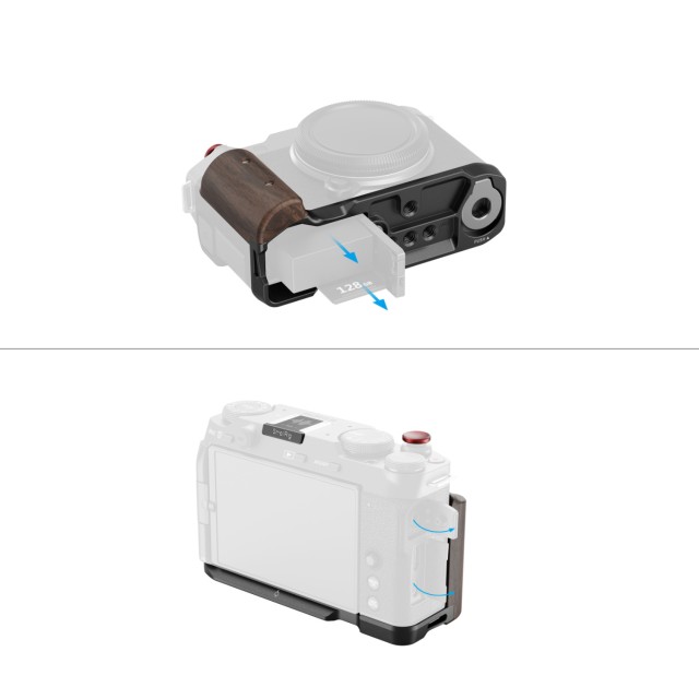 SmallRig L-oblikovana ploča za montažu s drvenom ručkom za FUJIFILM X-M5 (crna) 5260 dizajnirana je za poboljšanje hvata fotoaparata. L-oblikovani hvat se montira na fotoaparat vijkom 1/4"-20 na dnu, a ugrađeni silikonski jastučići sprječavaju ogrebotine. Rukohvat je izrađen od prirodnog masivnog drva, elegantan s bogatim, prirodnim osjećajem i ergonomski dizajniran kako bi se poboljšao osjećaj hvata. Ugrađena Arca-Swiss baza za brzo otpuštanje omogućuje jednostavnu i brzu montažu i demontažu stativa tipa Arca. Četiri rupe s navojem 1/4"-20 na dnu za pričvršćivanje ploča i stativa tipa Manfrotto. Utor za remen za zglob (ID: 3848). Ugrađeni ravni ključ na dnu za jednostavnu montažu i demontažu pribora. Dolazi s vjetrobranom s ugrađenim hladnim montažnim dijelom, koji smanjuje buku vjetra za 15dB. Ugrađeni silikon na dnu sprječava grebanje vrućeg dijela. Rukohvat dolazi s ekskluzivnim poklopcem za blic s otisnutim zvučnim valom "FUJIFILM" i godinom osnutka kao našom počasti FUJIFILM-u. Također dolazi s gumbom za otpuštanje okidača kako bi se osigurao mekan i udoban dodir prsta.