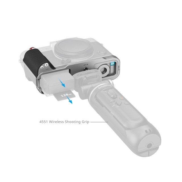 Rukohvat u obliku slova L omogućuje potpuni pristup svim sučeljima fotoaparata, uključujući odjeljak za bateriju, prsten za fokusiranje, utor za memorijsku karticu i priključke za zvučnike. Ovaj uređaj također uključuje plosnati ključ za jednostavno sastavljanje i rastavljanje, zajedno s poklopcem okidača za poboljšanje taktilne povratne informacije tijekom snimanja.