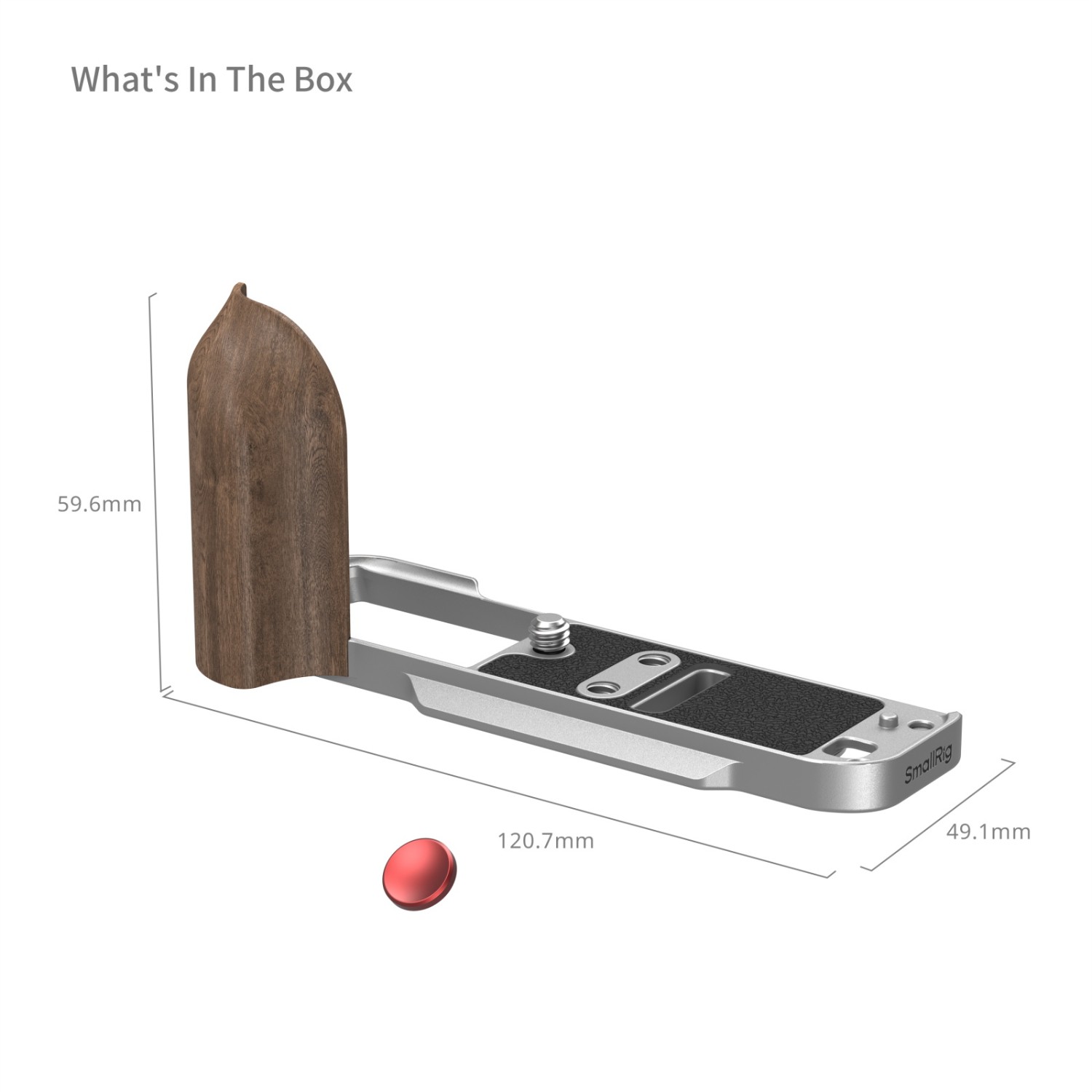SmallRig L-oblikovana montažna ploča s drvenom ručkom za FUJIFILM X-T30 / X-T30 II / X-T30 III (srebrna) 5667 dizajnirana je za poboljšanje udobnosti držanja i stabilnosti za kontroliranije snimanje. Sigurno se pričvršćuje na fotoaparat pomoću vijka 1/4"-20 na dnu, s integriranim silikonskim jastučićima za zaštitu od ogrebotina. Izrađen od punog drva, L-oblikovani držač ne samo da donosi toplu, prirodnu teksturu već i daje diskretan retro šarm vašem fotoaparatu.