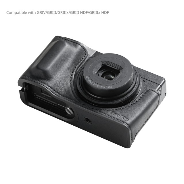 SmallRig 5676 kožna torbica s remenom za zglob za Ricoh GR IV (crna) kombinira klasični retro stil s izdržljivom konstrukcijom od kože i aluminija, nudeći poboljšano prianjanje, zaštitu kamere i potpuni pristup kontrolama i bateriji.