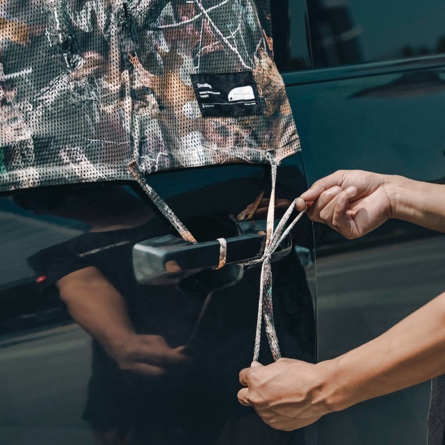 Instalacija je jednostavna - stavite zavjesu preko prozora i pričvrstite je na dvije točke trakama za sigurno, univerzalno pristajanje na većinu terenskih SUV vozila. Tkanina je tretirana izdržljivim vodoodbojnim premazom, koji nudi pouzdanu zaštitu od kiše, snijega, prašine, pa čak i dosadnih insekata - tako da možete udobno snimati u bilo kojem okruženju.