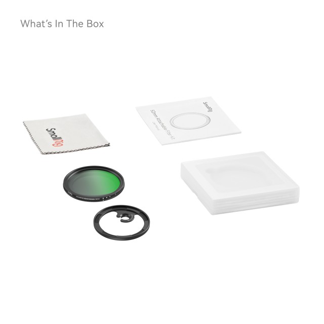 SmallRig MagEase Magnetic VND Filter Kit ND2-ND32 (1-5 Stop) s M-mount adapterom filtra 52 mm 4386B je VND filter kit, uključujući filter i M-mount magnetski adapter. VND se sastoji od dva CPL-a, koji se slažu i okreću kako bi se smanjila količina svjetlosti, čime se uravnotežuje vrijeme ekspozicije. Njegov unutarnji polarizator magnetski se montira na SmallRig filter adapterski prsten preko donjeg prstena za lociranje, dok se vanjski polarizator može rotirati preko prstena od aluminijske legure u varijacijama od 1-5 koraka kako bi se smanjila količina svjetlosti. Izrađen od njemačkog Schott B270i HD stakla, filtar ima AR premaze otporne na vodu, mrlje, plijesan i ogrebotine, s manje nijansi boje, kao i ultratanki okvir izrađen na CNC-u. Filtar velikog promjera sprječava vinjetiranje čak i pri snimanju s ultraširokokutnim objektivom. Može se magnetski i sigurno pričvrstiti na SmallRig adapter magnetskog filtarskog prstena preko donjeg dizajna protiv defleksije i rotirati između niza tvrdih graničnika na ND2 i ND32 za preciznu kontrolu snimanja.