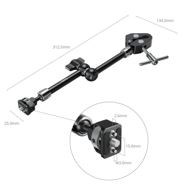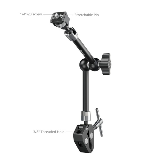SmallRig Magic Arm sa stezaljkom u obliku raka (11") 5311 sastoji se od magične ruke i stezaljke u obliku raka. Jedan kraj ima vijak 1/4"-20 i uvlačive klinove, opremljen nazubljenim vijkom za jednostavno pričvršćivanje bez alata, zajedno s dodatnom rupom za pričvršćivanje pomoću priloženog imbus ključa.