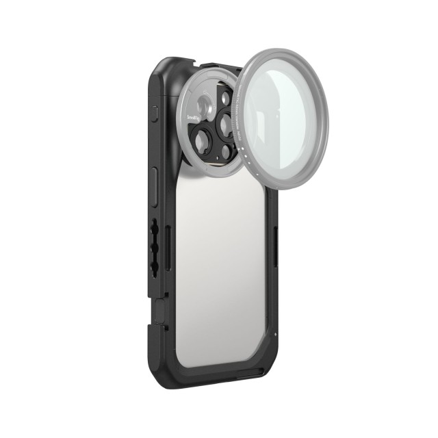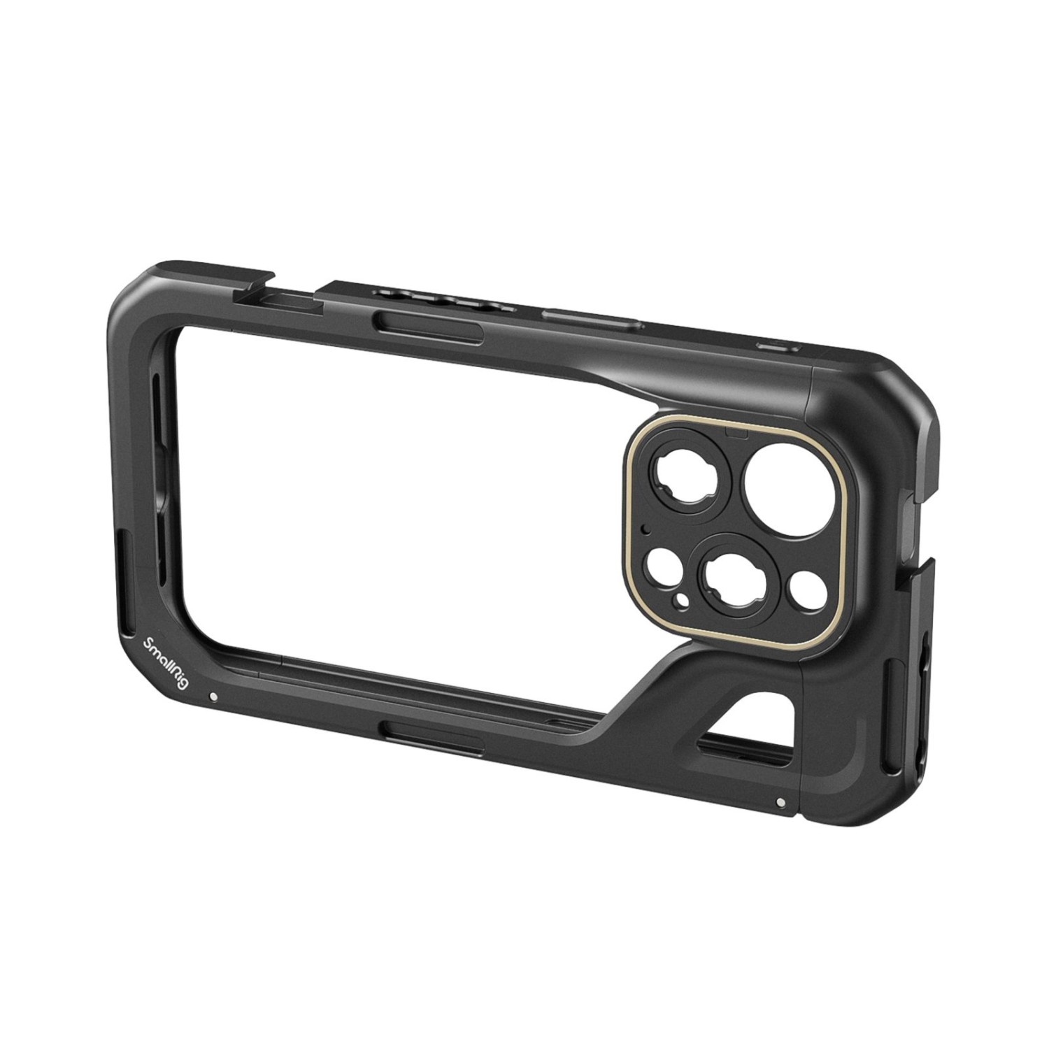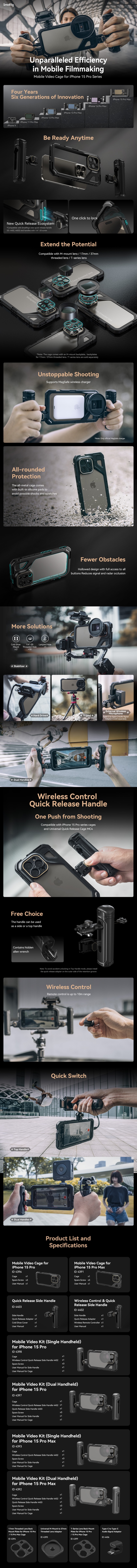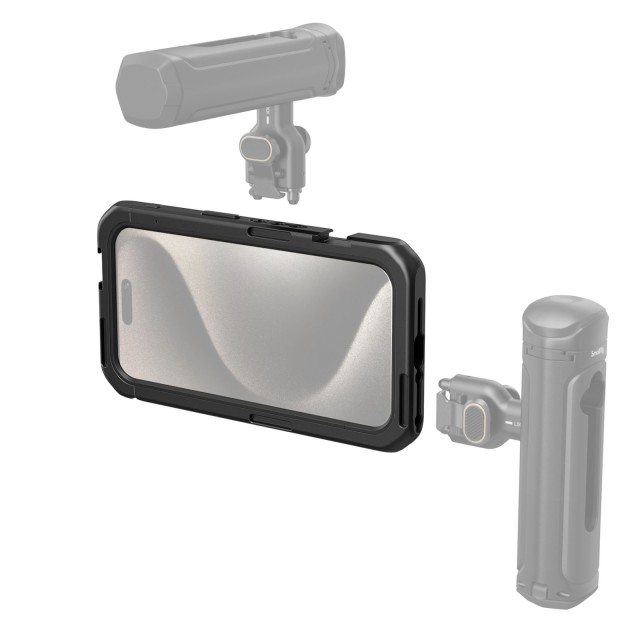 SmallRig Mobile Video Cage za iPhone 15 Pro 4396 višenamjenski je kavez za mobilni telefon posebno dizajniran za iPhone 15 Pro za postizanje visokokvalitetnog video snimanja, live streaminga i snimanja vloga. Kompaktan i oblikovan kavez težak je samo 106 g. Sadrži rupe s navojem od 1/4"-20 i hladne cipele za pričvršćivanje ručke, stativa, mikrofona, LED video svjetla, itd., što je olakšano i ubrzano s potpuno novim Quick Release ekosustavom. Postoje rupe za remen za remen na obje strane kaveza promjera manje od 2 mm. Kavez omogućuje postavljanje objektiva M-mount ili, zamjenom stražnje ploče, objektiva s navojem od 17 mm / 37 mm, objektiva serije Moment T. Suptilno je izdubljen kako bi se omogućio potpuni pristup svi gumbi, priključci, radarska ultraširokokutna leća i MagSafe bežični punjač. Dizajn za brzo zaključavanje i otpuštanje jednostavan za korištenje je sigurniji i stabilniji, sprječava slučajno otključavanje zbog pogrešnog dodira. Dolazi i potpuno metalni kavez s ugrađenim jastučićima za izbjegavanje mogućih udaraca i ogrebotina. Stavljanje ovog kaveza ne bi ometalo vašu sposobnost snimanja vodoravnih ili okomitih fotografija.
