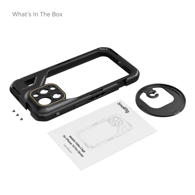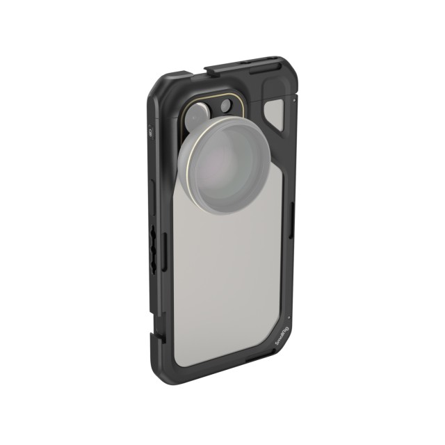 SmallRig Mobile Video Cage za iPhone 15 Pro Max 4391B višenamjenski je okvir za mobilni telefon posebno dizajniran za iPhone 15 Pro Max za snimanje video zapisa visoke kvalitete, live streaming i snimanje vloga. Kompaktan i oblikovan kavez težak je samo 116 g. Sadrži rupe s navojem od 1/4"-20 i hladne cipele za pričvršćivanje ručke, stativa, mikrofona, LED video svjetla itd., što je olakšano i ubrzano s potpuno novim ekosustavom za brzo otpuštanje. S obje strane postoje rupe za remen za remen promjera manjeg od 2 mm. Omogućuje montiranje M-mount leće ili, zamjenom stražnje ploče, leće s navojem od 17 mm / 37 mm, Objektiv Moment T je suptilno izdubljen kako bi se omogućio potpuni pristup svim gumbima, priključcima, ultraširokokutnom objektivu i jednostavnim za zaključavanje i otpuštanjem dizajnom, koji sprječava slučajno otključavanje zbog pogrešnog dodira. Potpuno metalni kavez također dolazi s ugrađenim jastučićima za izbjegavanje mogućih udaraca i ogrebotina ovaj kavez ne bi ometao vašu sposobnost snimanja vodoravnih ili okomitih fotografija.