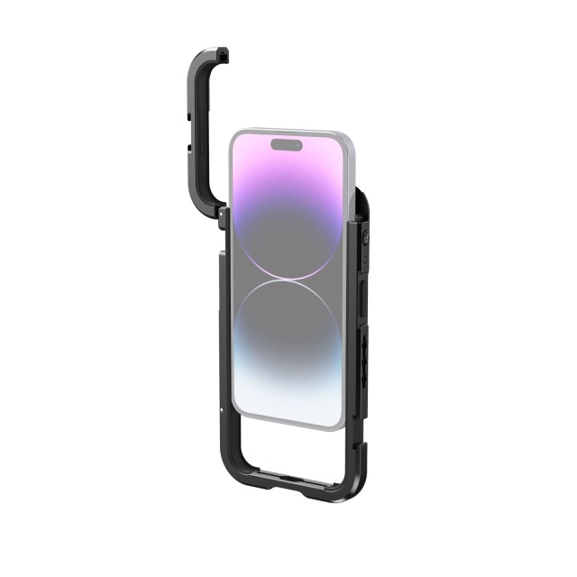 SmallRig Mobile Video Cage Kit (Single Handheld) za iPhone 14 Pro Max 4099 savršena je mobilna video kamera za snimanje vlogova, mobilnih filmova, reklama itd. Komplet dolazi s kavezom posebno dizajniranim za iPhone 14 Pro Max i bočnom ručkom za bežično upravljanje za stabilnije i ugodnije snimanje telefonom. Kavez ima rupe s suprotnim navojem od 1/4"-20 i držače za držanje dodatne opreme kao što su tronožac, mikrofon i LED svjetlo, itd. Zamjenom stražnje ploče podržava M-mount ili leće s navojem od 17 mm. Šupljina dizajn omogućuje pristup gumbima, priključcima, radaru i ultraširokokutnoj leći iPhonea. Novi dizajn povećava golu površinu stražnje strane i potpuno je kompatibilan s Appleovim službenim bežičnim uređajima za punjenje. Metalni puni kavez s ugrađenim -in jastučići sprječavaju ogrebotine, smanjuju vibracije Kavez omogućuje vodoravno i okomito skeniranje.