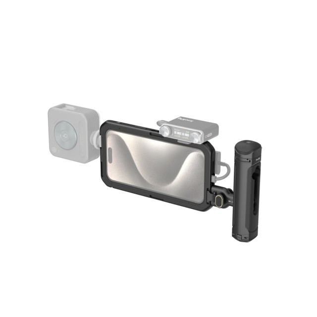 SmallRig Mobile Video Kit (Single Handheld) za iPhone 15 Pro Max 4393B uključuje jednu bežičnu upravljačku ručku, koja omogućuje snimanje "jednim klikom" i osigurava stabilno snimanje videa i vlogging. Kavez ima višestruke rupe s navojem od 1/4"-20 i hladnu obuću za pričvršćivanje ručke, stativa, mikrofona, LED video svjetla itd. Svi imaju novi SmallRig Quick Release dizajn za jednostavno i trenutno prebacivanje između snimanja u vodoravnoj i okomitoj orijentaciji.
