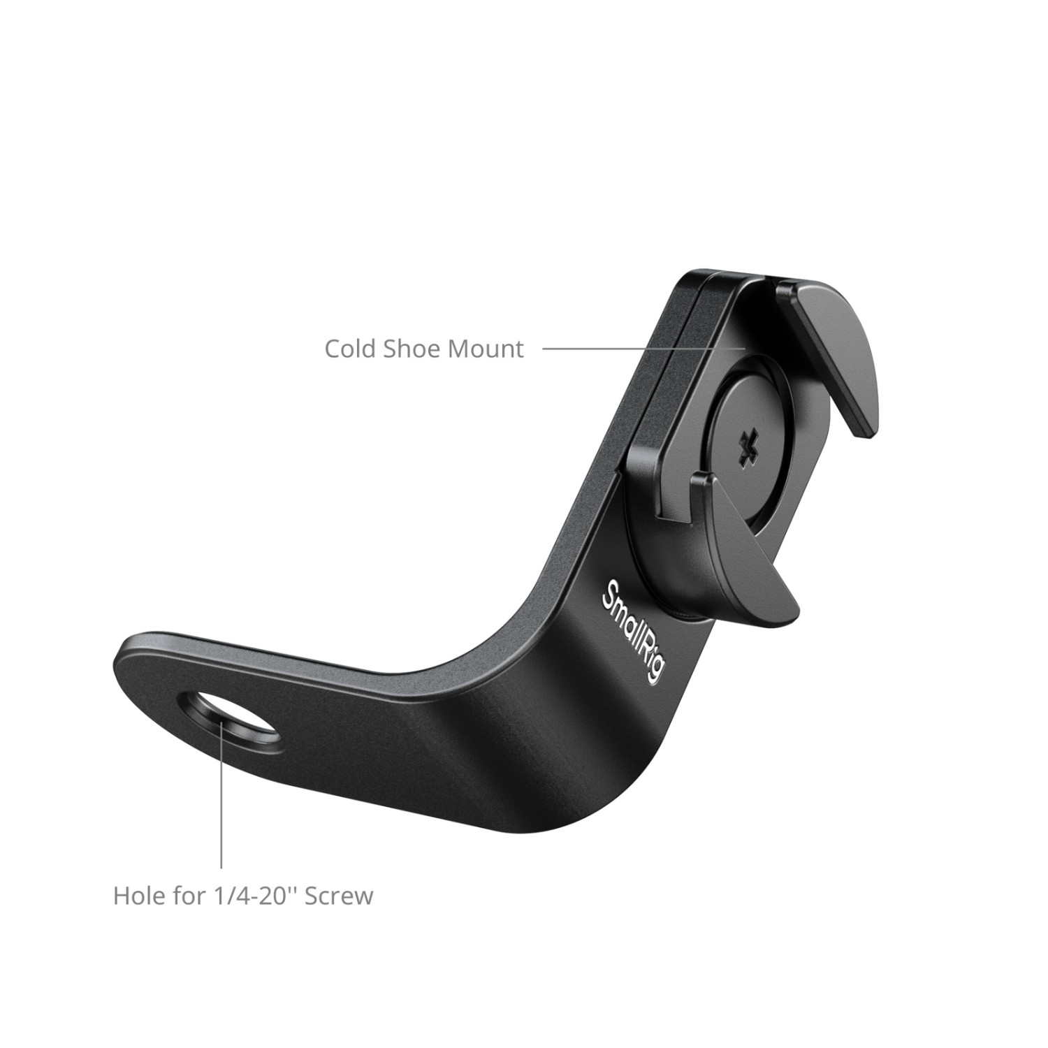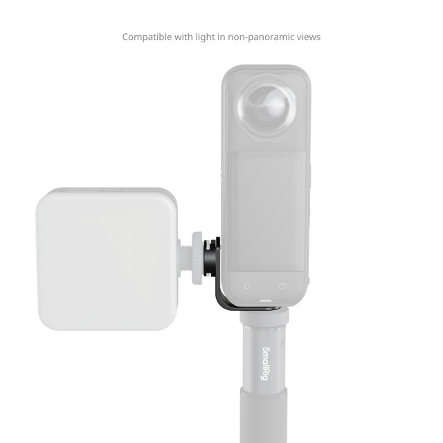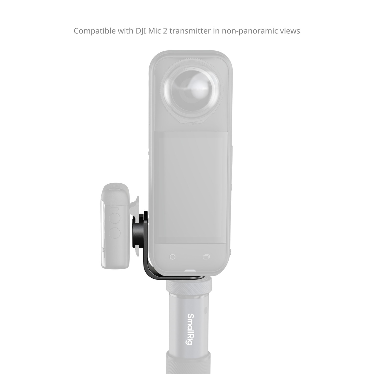 SmallRig nosač za Insta360 X4 / X5 s Cold Shoe nosačem 5825 je nevidljivi nosač za mikrofon posebno dizajniran za uparivanje DJI Mic 3 odašiljača s Insta360 X5 / X4. Njegov hladni nosač omogućuje horizontalnu rotaciju od 360°, osiguravajući optimalno pozicioniranje mikrofona bez ometanja snimanja od 360°. Baza ima standardni navojni otvor od 1/4"-20 za kompatibilnost sa selfie štapovima.