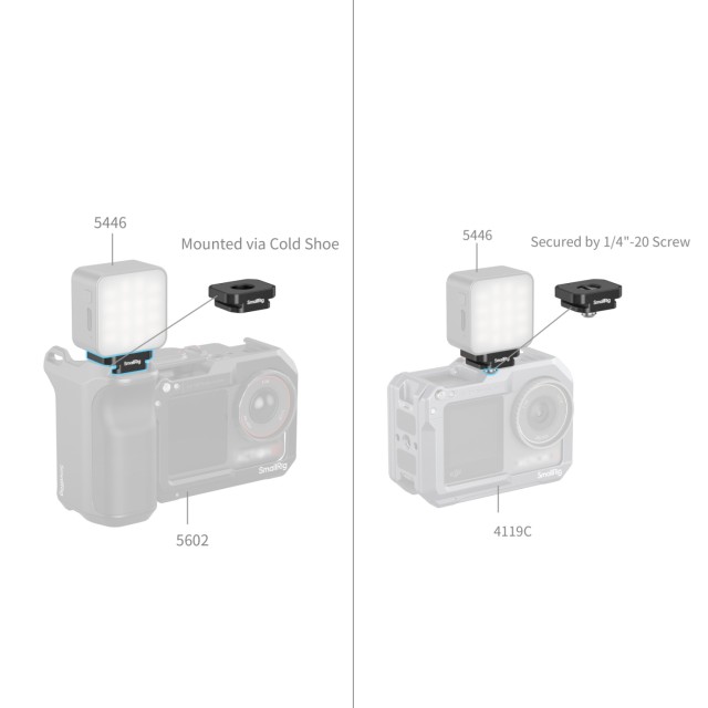 Nosači podržavaju dvije metode montaže: pričvršćivanje hladnim papučicama i montažu s navojem. Ova fleksibilnost osigurava kompatibilnost sa SmallRig-ovim kavezom (ID 4119C) i magnetskim video svjetlima (ID 5446), kao i besprijekornu integraciju s DJI Mic 2.