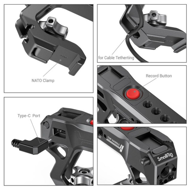 SmallRig NATO gornja ručka s daljinskim okidačem 3322 dizajnirana je za praktičnu kontrolu početka/zaustavljanja snimanja za stabilno i udobno snimanje. Ručka jednostavnog i ergonomskog dizajna ima gumb za snimanje od silikonskog gela na vrhu gdje se nalazi palac i dolazi s višestrukim rupama s navojem 1/4"-20, 3/8"-16, ARRI rupom za lociranje 3/8"- 16 i hladne cipele za montažu pribora. Njegov prednji hladni nosač sa zaštitom od spoticanja sprječava slučajno odspajanje s pribora i odgovara nosaču monitora 2346. Prednja strana je opremljena utorom za pričvršćivanje kabela i ARRI 3/8"-16 rupom za lociranje za nosač Monitor Mount 2348. Može se brzo pričvrstiti na NATO tračnicu i raditi s NATO tračnicom BUN2468 za veću kompatibilnost; njegova visina i duljina, kao i njegovo težište, dobro su dizajnirani za snimanje iz ruke. Položaj sučelja s NATO tračnicom odgovara zahtjevima težišta za ručno očitavanje. Opremljen je s tri kontrolna kabela koji podržavaju Sony A7II/A7III/A6000/A6500, FUJIFILM X-T3/X-T4, Panasonic GH5/5S/G9/G95/S5/S1/S1R/S1/BGH1 i Z CAM E2/ M4/S6. Dodajte dulji kontrolni kabel ID:3407, koji se prodaje zasebno, u komplet za rame za Sony fotoaparate. Drška je kompatibilna sa sljedećim kamerama: