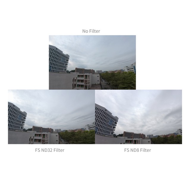 Komplet uključuje četiri osnovna filtera za različite uvjete snimanja: FS ND8 filter za uvjete jakog dnevnog svjetla radi postizanja uravnotežene ekspozicije; FS ND16 filter za umjereno osvjetljenje koji pomaže u očuvanju detalja u svijetlim i sjenovitim dijelovima tijela; FS ND32 filter za uvjete jakog osvjetljenja ili kreativne duge ekspozicije poput svjetlosnih tragova i efekata zamućenja pokreta; i CPL filter koji učinkovito uklanja neželjene refleksije s nemetalnih površina poput vode i stakla, a istovremeno poboljšava vidljivost pod vodom i kroz prozor.