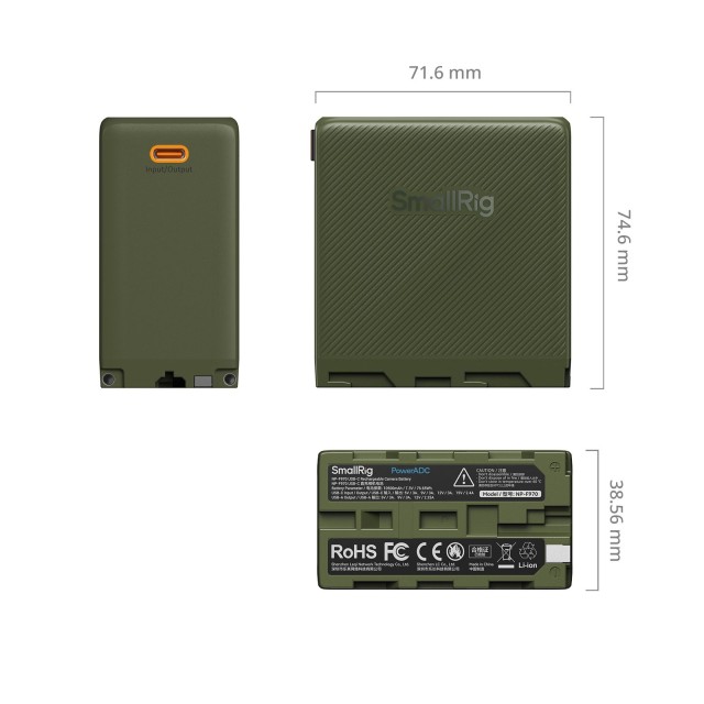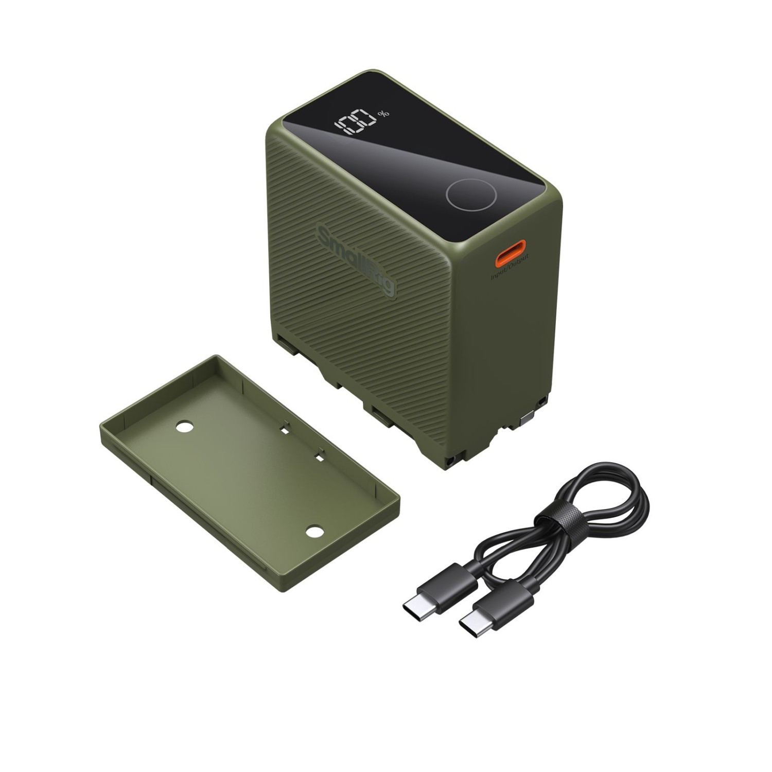 SmallRig NP-F970 USB-C punjiva baterija za fotoaparat je svestrana i inteligentna baterija visokog kapaciteta, visokih performansi s izravnim punjenjem kapaciteta 10500 mAh (76,65 Wh). Njegov veliki kapacitet osigurava dugotrajnu snagu, zadovoljavajući potrebe za snagom tijekom snimanja. Glavni priključak na dnu baterije može napajati razne uređaje kao što su kamere, LED video svjetla, monitori, motorizirani klizači i drugi. Također dolazi opremljen s jednim USB-C priključkom i jednim USB-A priključkom, što omogućuje punjenje elektroničkih uređaja poput pametnih telefona, tableta i drugih elektroničkih uređaja. USB-C priključak funkcionira i kao ulaz i kao izlaz, s maksimalnom snagom od 36 W. Punjenje baterije pomoću USB-C priključka traje samo 3,5 sata, što omogućuje učinkovito stvaranje. USB-A priključak pruža funkciju izlaza s maksimalnom snagom od 27 W, dodajući više funkcionalnosti bateriji kroz svoja različita sučelja. USB-C i USB-A priključci imaju paralelne strujne krugove, što omogućuje istovremeno brzo punjenje dvaju uređaja. Ova baterija također dolazi s tipkama na dodir i zaslonom za prikaz razine napunjenosti baterije, pružajući precizne informacije o razini napunjenosti baterije za jednostavno praćenje statusa baterije u bilo kojem trenutku. Ove baterije imaju inovativnu mješavinu vrhunske tehnologije i elegantnih dizajnerskih elemenata, sa šarenim vanjskim dizajnom koji povećava njihovu vizualnu privlačnost. Osim toga, ova baterija ima visokokvalitetne baterije i čipove za inteligentno upravljanje te je opremljena višestrukim zaštitnim značajkama za vaše kreativne napore.