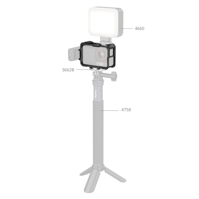 SmallRig Cage za DJI OSMO Action 5 Pro / 4 / 3 5135 dizajniran je za DJI OSMO Action 5 Pro, Action 4 i Action 3, poboljšavajući iskustvo snimanja vloga. Kavez ima tri hladna nosača za pričvršćivanje dodataka, kao što su DJI Mic 2 i LED video svjetla (ID 4660 ), što omogućuje optimizirano osvjetljenje i zvučne efekte. Bočni magnetski nosač za brzo otpuštanje omogućuje jednostavno pričvršćivanje originalnih DJI magnetskih dodataka, poput selfie štapa, olakšavajući neprimjetan prijelaz između vodoravnog i okomitog snimanja.