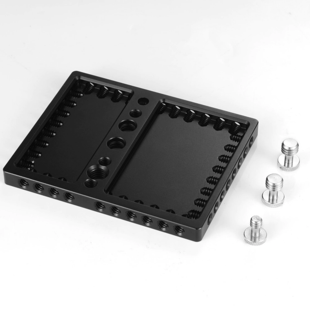 Osnovna ploča SmallRig za Kinefinity Terra/Mavo/Mavo LF MD2302 kamere pruža raspon 1/4" točaka za montiranje za Kinefinity Terra i Mavo kamere bez dodavanja težine. Dodatne točke za montiranje mogu se koristiti, na primjer, za pričvršćivanje 15 mm nosača šipke ili V - Sklop brave. To je sjajan način za povećanje fleksibilnosti bez potrebe za dodavanjem puno hardvera za montažu. Osnovna ploča čvrsto je pričvršćena na fotoaparat s dva vijka od 3/8" i jednim vijkom od 1/4". Ploča za tronožac može se montiran ispod temeljne ploče.